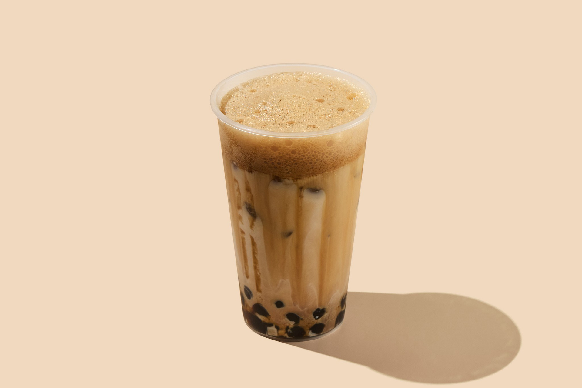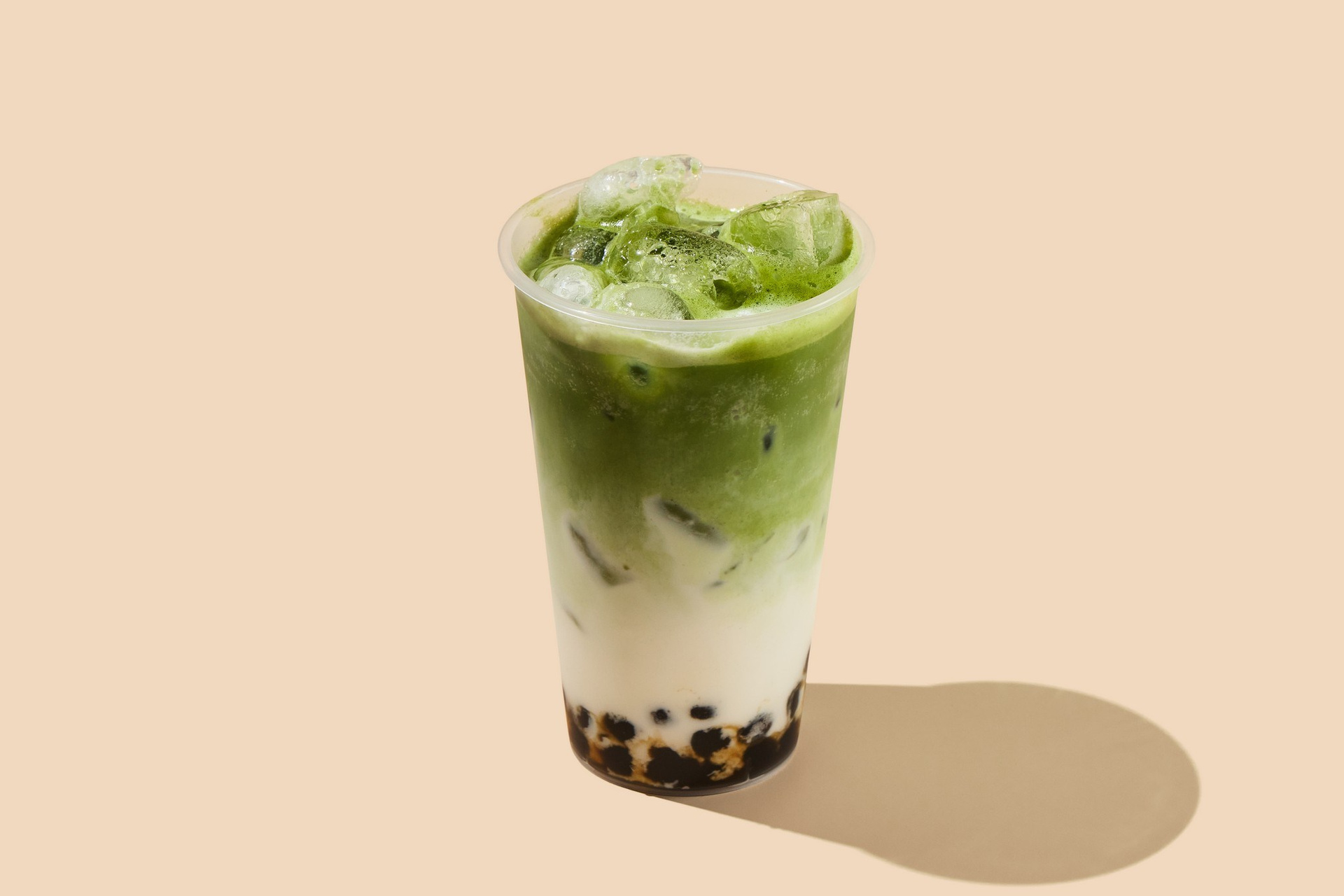 Фуд-фото напитков Bubble Tea для печатного меню небольшого суши-бара в Новой Москве. Светлый фон, резкие тени и контрастный напиток.