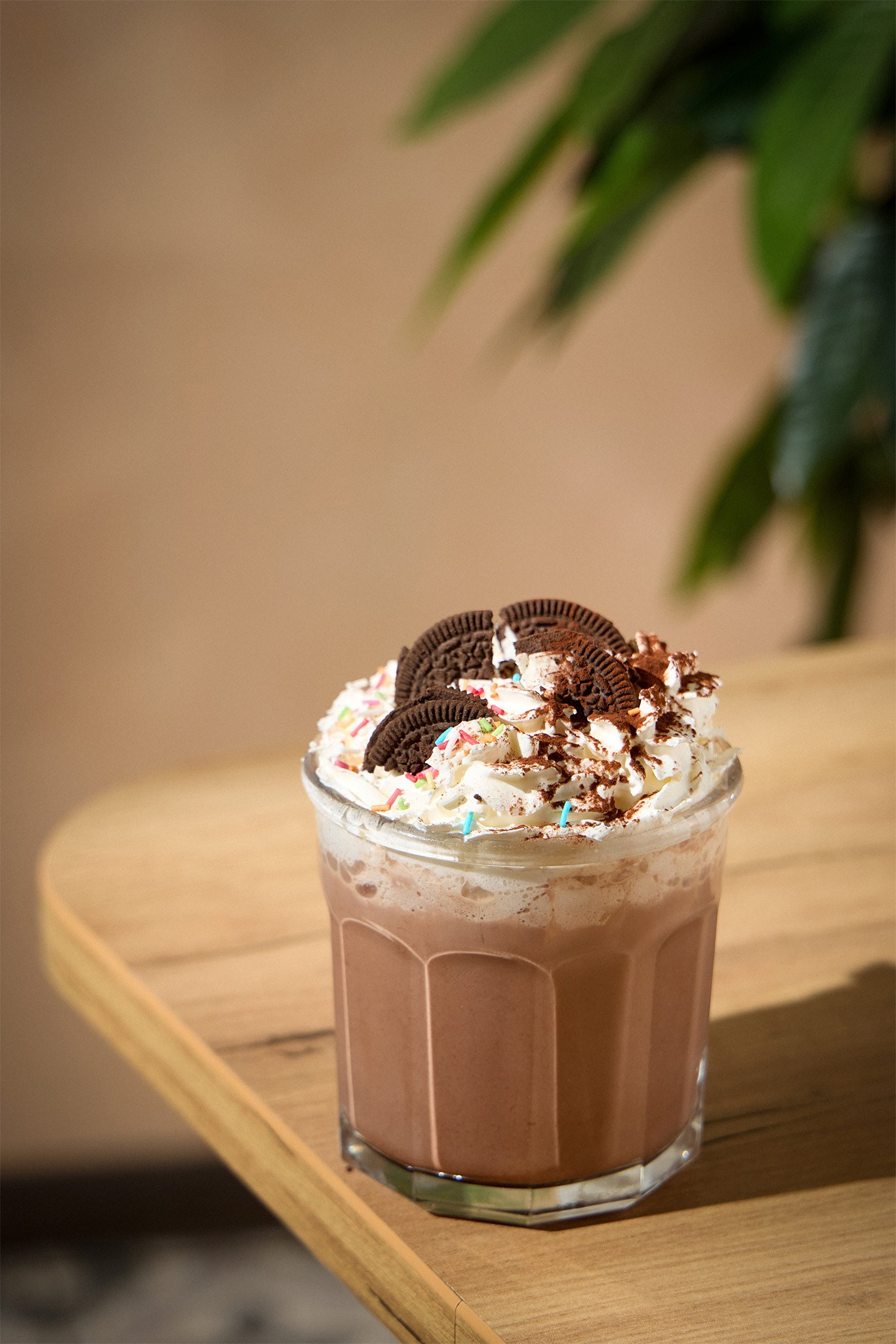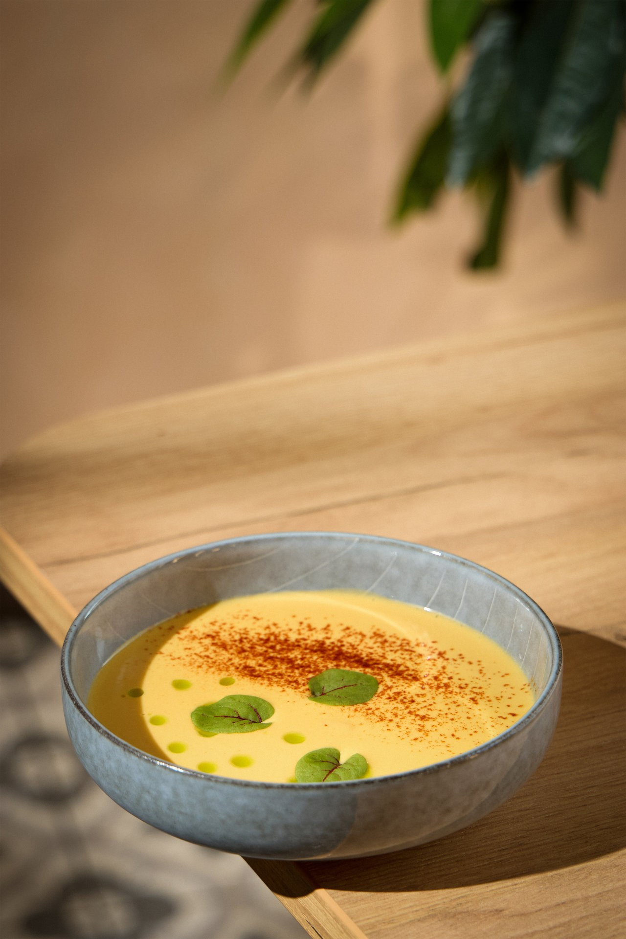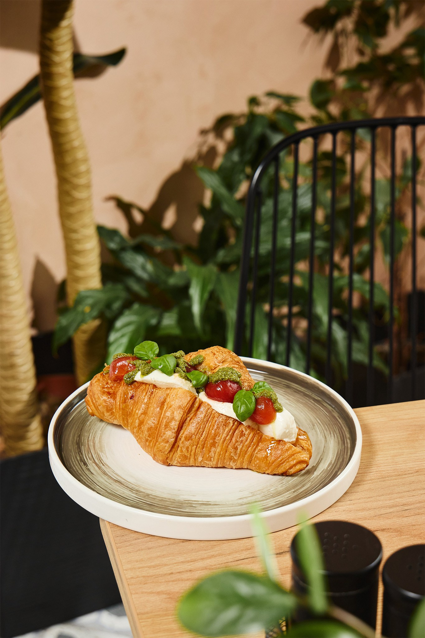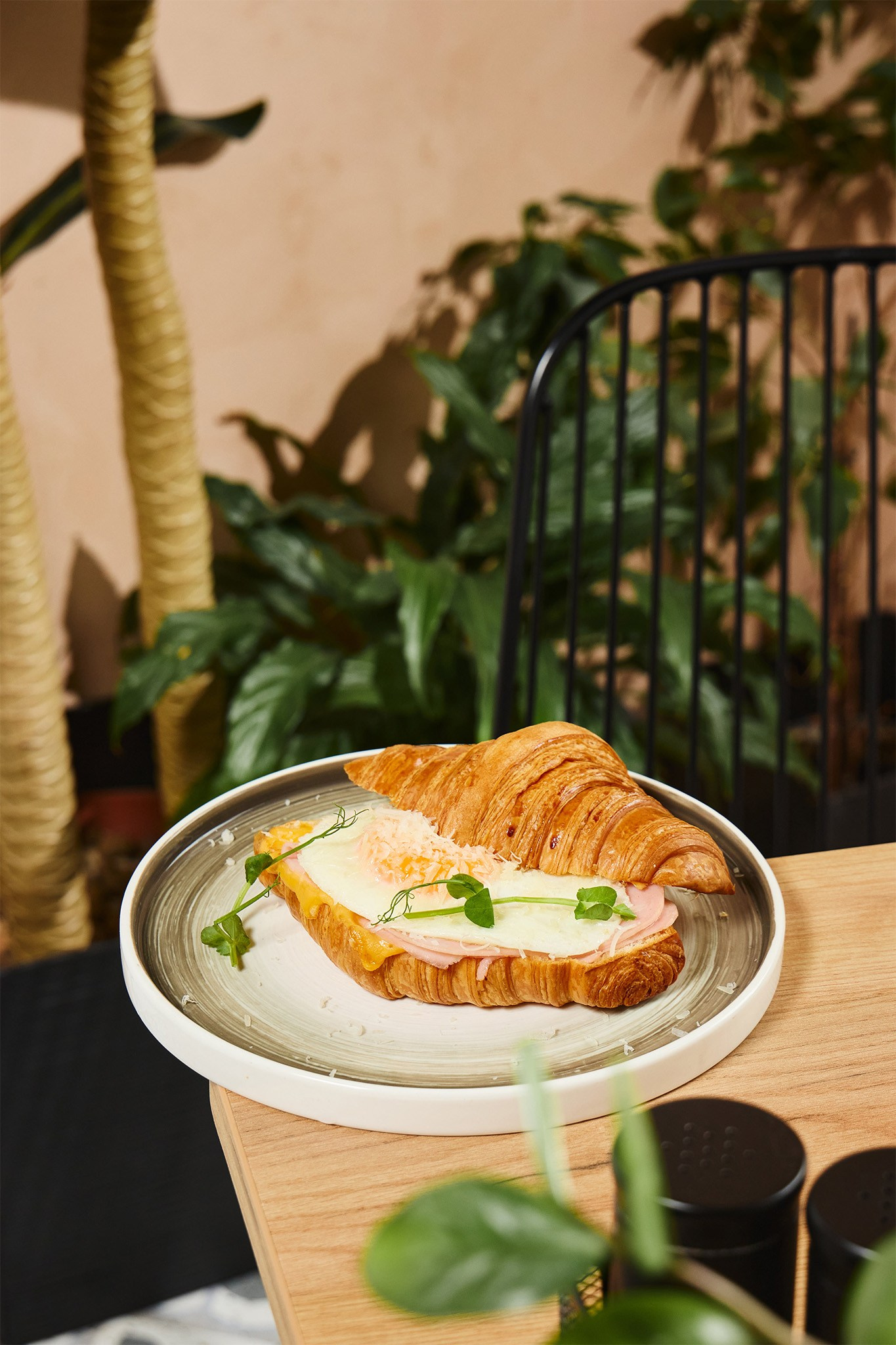 Солнечное утро в небольшом кафе The Zavtrak на Полярной улице. Вкусное капучино и английский завтрак. Съемка для меню и доставки.
